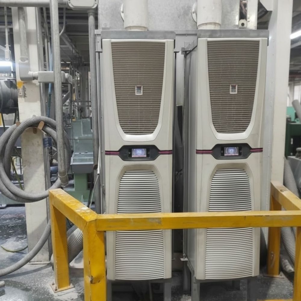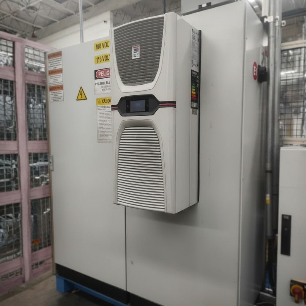 Los aires acondicionados para gabinetes que integramos en Cúbica Industrial garantizan un ambiente interno estable y libre de contaminantes, protegiendo variadores, PLCs y equipos electrónicos sensibles contra el sobrecalentamiento